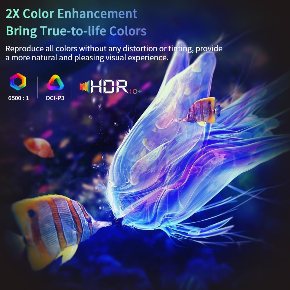 - 🎯 Native 1080P & 4K Support – Cinema-Quality Clarity: Experience stunning 4K decoding and native Full HD 1920x1080 resolution with HDR10 and 95% NTSC colour accuracy.This home cinema projector is ideal for movies,sports,or gaming. Enjoy vibrant, lifelike colours and crisp details without washed-out visuals.
