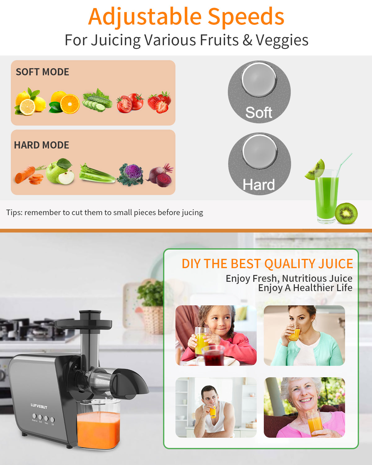 LUFVEBUT slow juicer makes it easy for you to DIY and enjoy fresh juice, strengthen your immunity and make your life healthier!